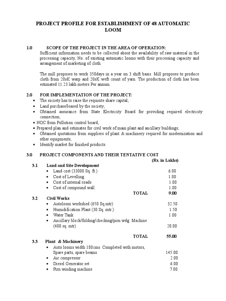 Project Profile For Establishment of 48 Automatic Loom 1.0 Scope of