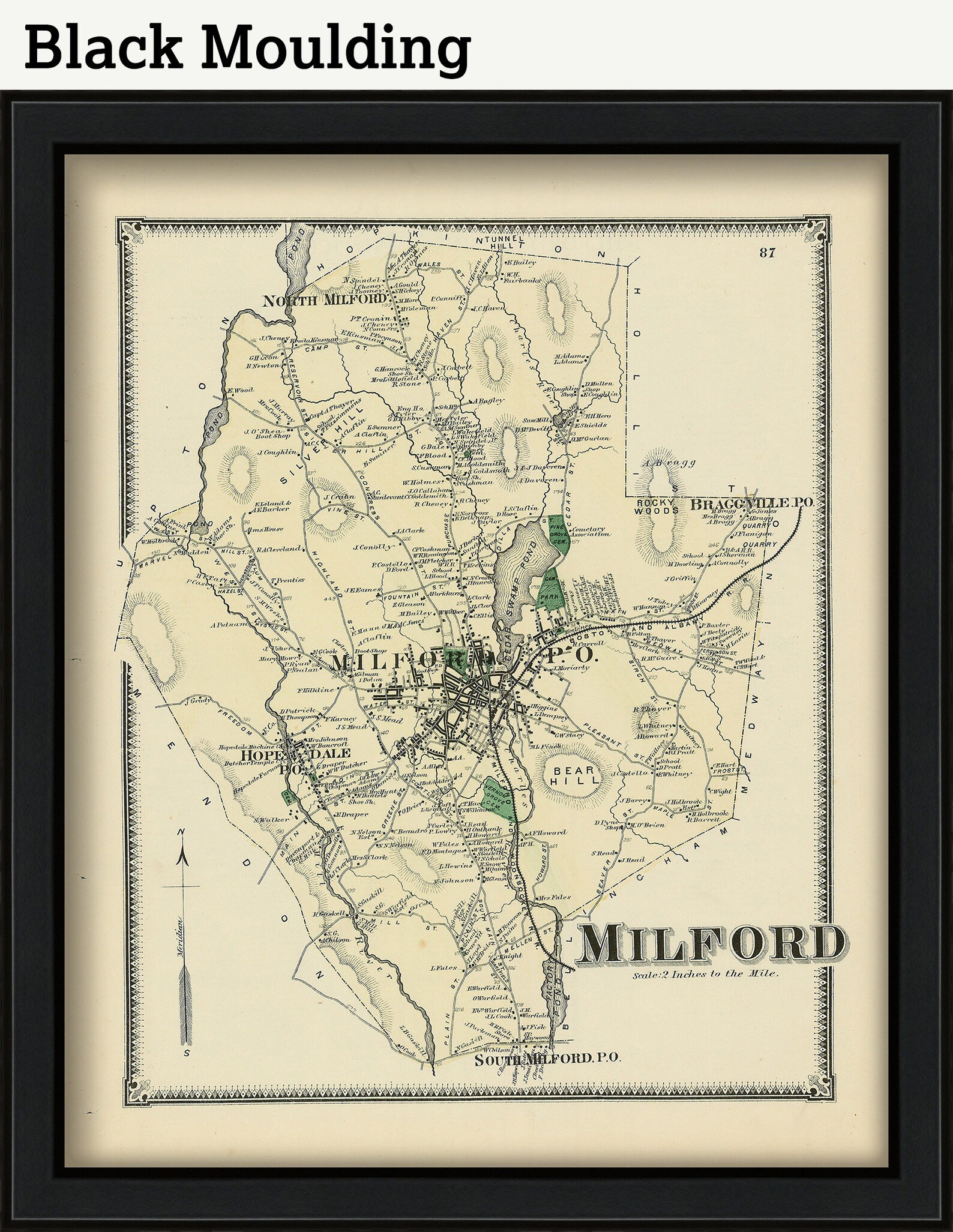 Town of MILFORD Massachusetts 1870 Map Etsy