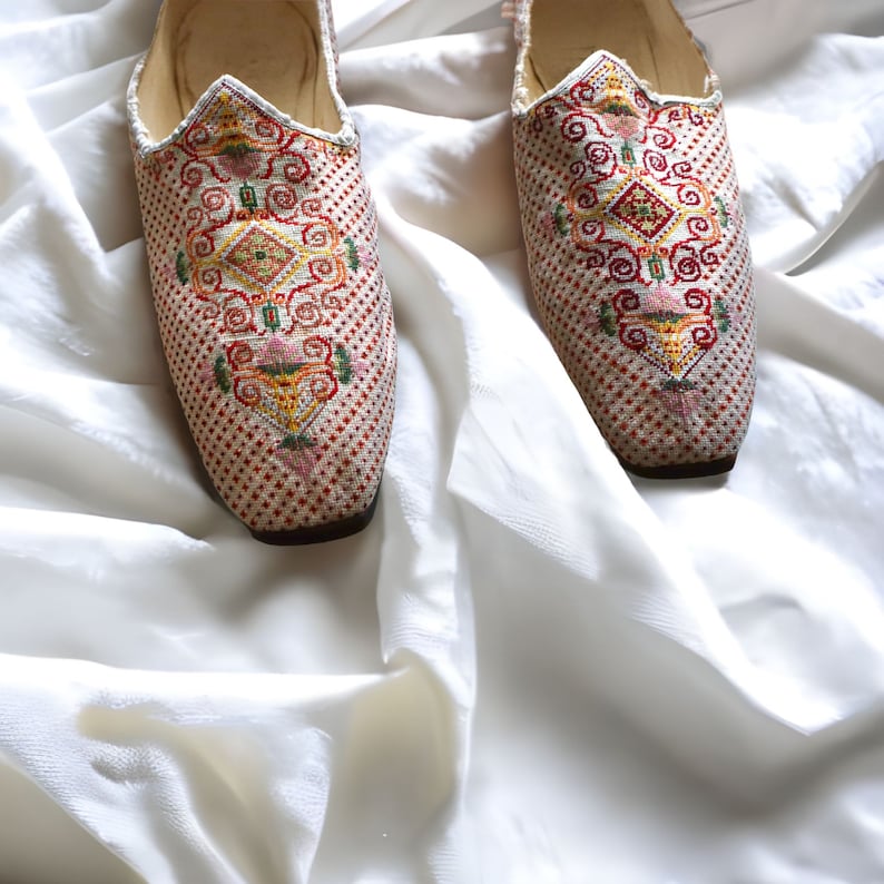 Antique French 18th Century Needlepoint Slipper Shoes Leather Soles Needlepoint Slipper Shoes a handstitched needlepoint smoking slipper or mule with whimsical designs to fit your every mood. Free shipping on all u.s. Stubbs & wootton pioneered the needlepoint slipper 30 years ago, and to this day, the brand remains the preminent leader in this style. I've gotten quite a few questions about the 1:12 slippers i made and blogged about in. Needlepoint Slipper Shoes.
