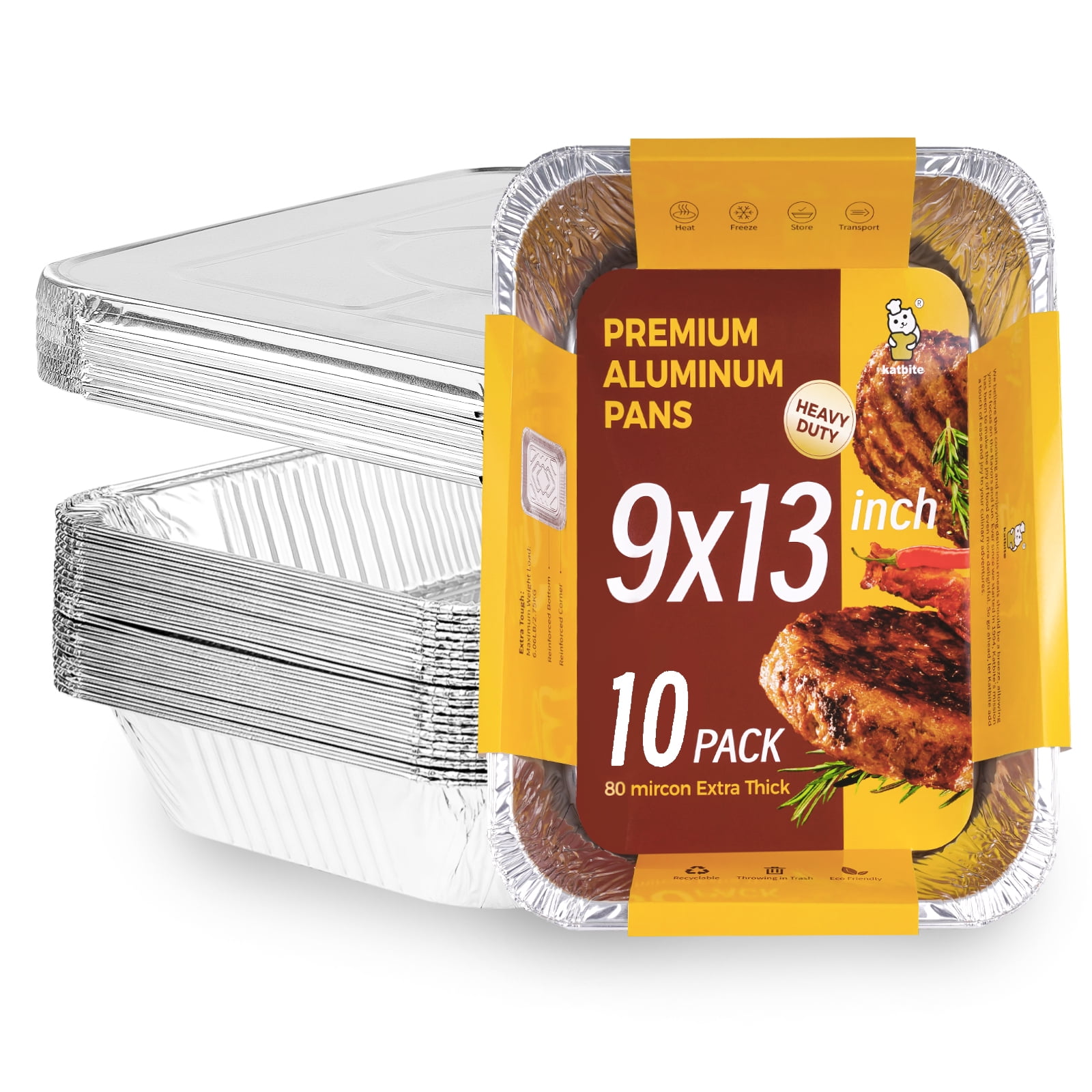 Katbite Aluminum Foil Roaster Baker Pans,9x13inch Heavy Duty Foil Takeout Pans,10 Count