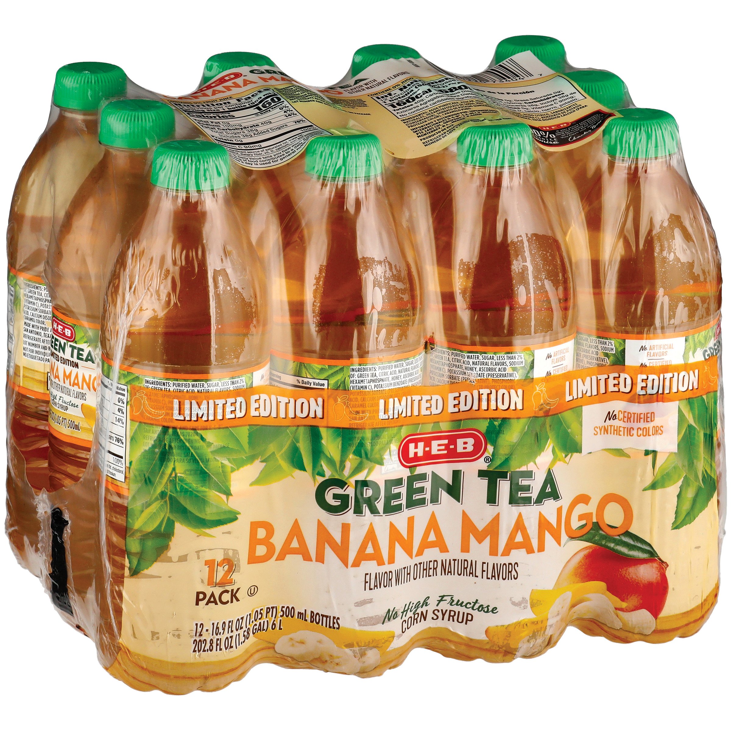 HEB Limited Edition Banana Mango Green Tea 16.9 oz Bottles Shop Tea at HEB