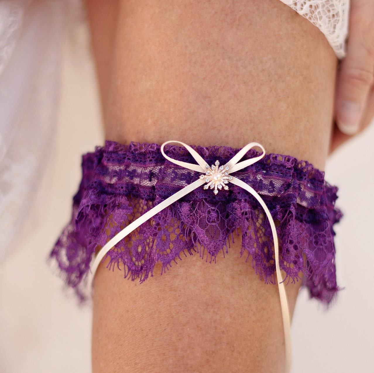 Purple lace bridal garter delicate lace garter purple Etsy