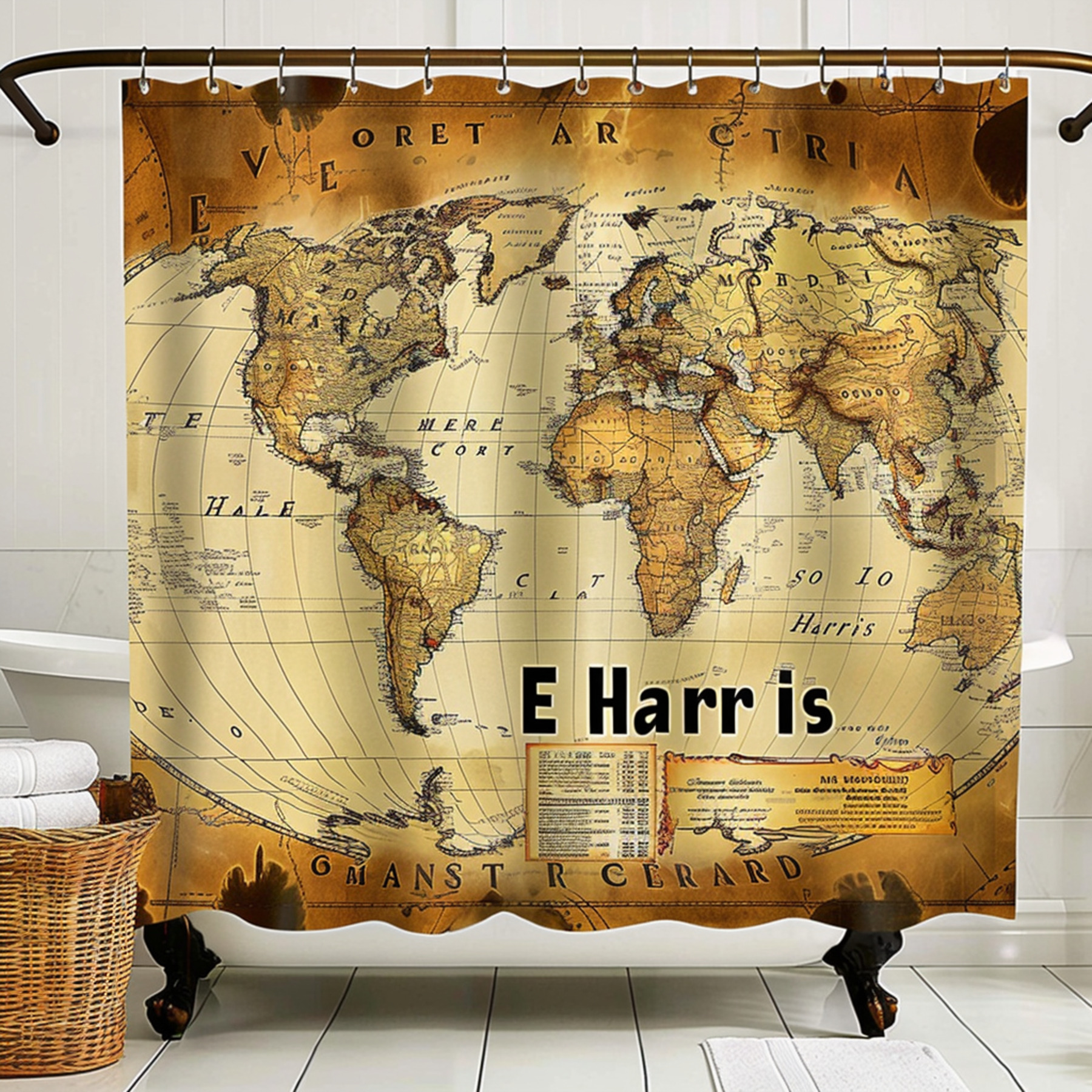 Vintage World Map E Harris Shower Curtain Beige Brown Yellow Black