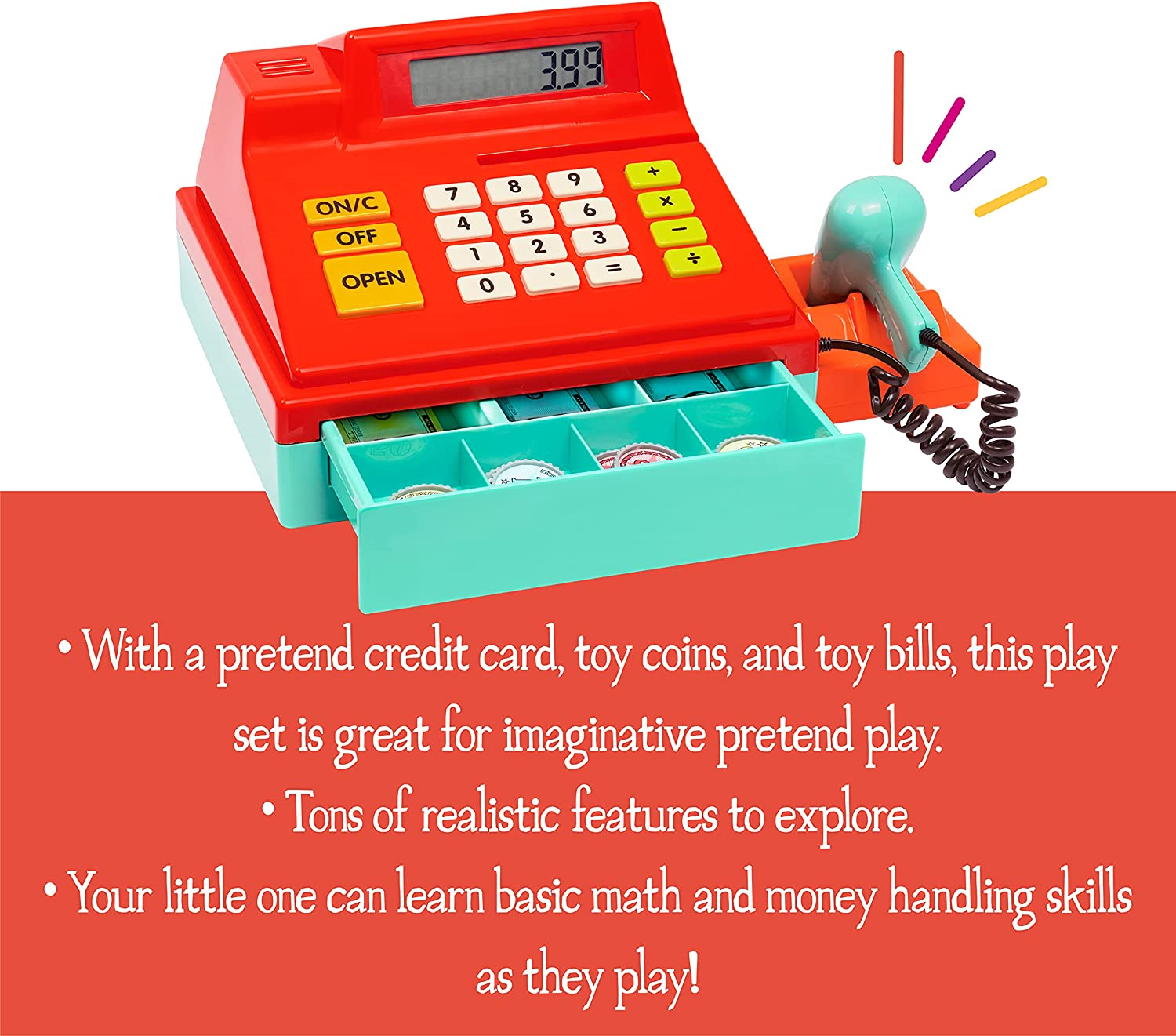 Battat â Toy Cash Register for Kids, Toddlers â 49pc Play Register with
