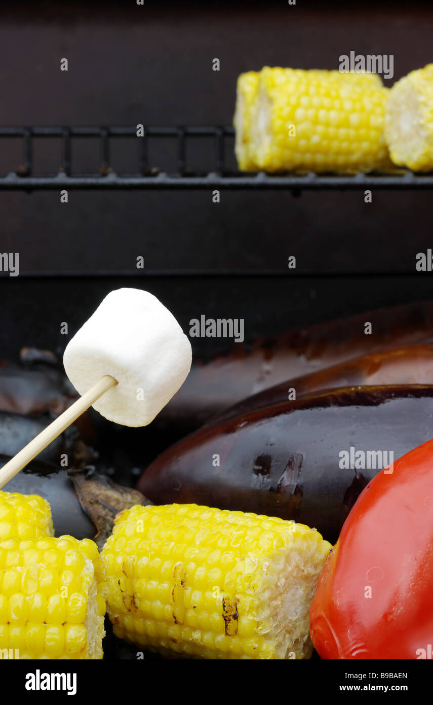 Marshmallow on grill Stock Photo Alamy