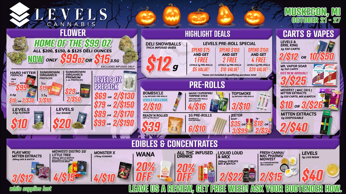 π° HOME OF THE 99 OZ π° at Levels Cannabis Muskegon Weedmaps