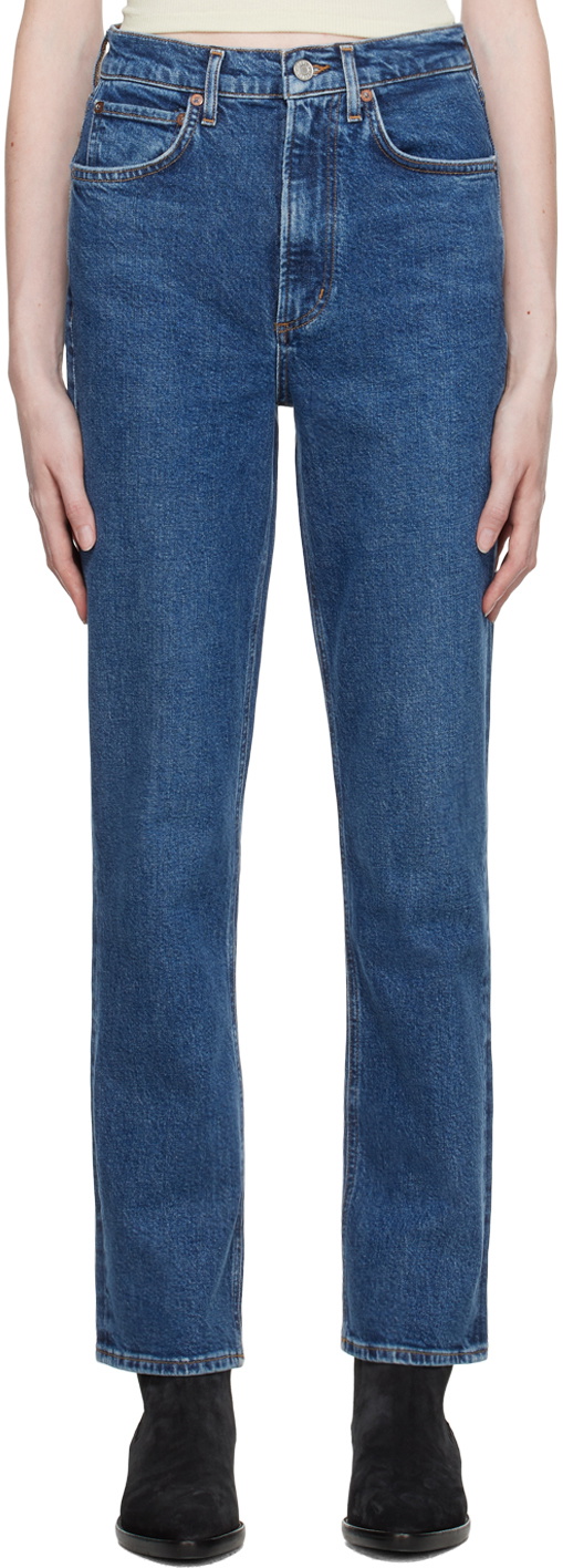 AGOLDE Blue High Rise Stovepipe Jeans AGOLDE