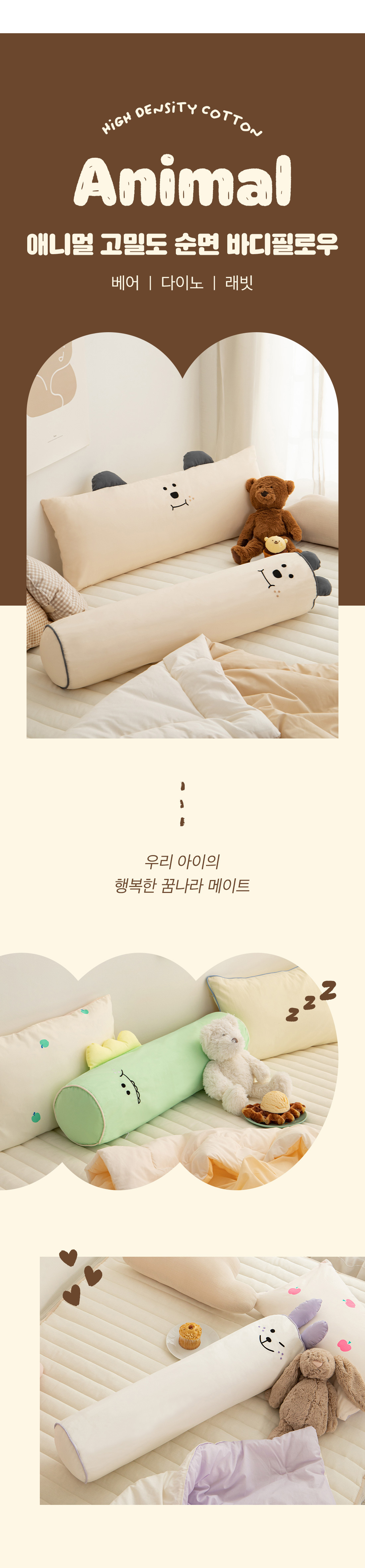 쉬즈홈 애니멀 고밀도 순면 형태 바디필로우 3종 (솜포함) 현대Hmall