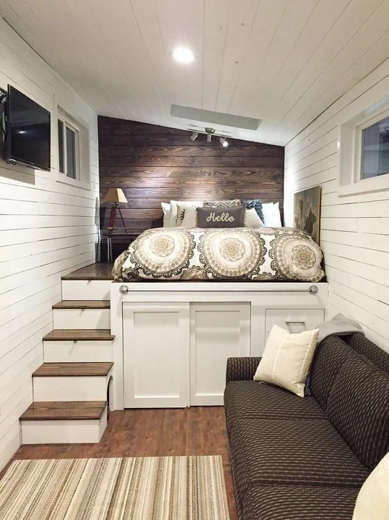 17 Tiny House Bedroom Loft Ideas (Photos) Tiny Bedroom With Loft Bed Explore ways to optimize every nook. Whether you have a small bedroom or a tiny studio apartment, these inspiring loft bed ideas will double your space. See 21 lofted bedroom designs below, which are guaranteed to take your style to new heights. If you're looking to make the most of your bedroom space, why not raise the bar with these. Tiny Bedroom With Loft Bed.