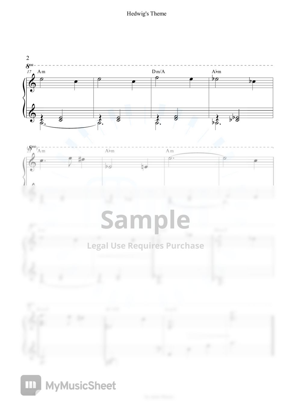 Harry Potter OST Hedwig's Theme (해리포터 OST) (Am Key, Easy) 악보 by mini