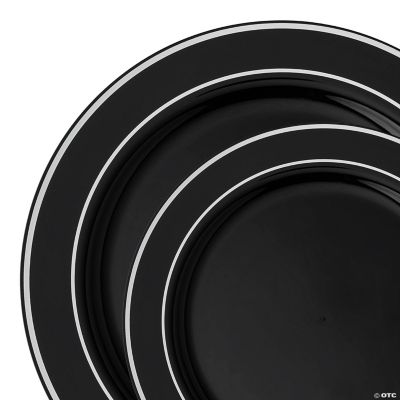 Black with Silver Edge Rim Plastic Dinnerware Value Set (120 Dinner Dinner Plates With Black Rim Shop melamine, ceramic, stoneware & more. A unique collection that seamlessly blends sleek. at kitchen warehouse, our individual dinner plates start at $6, which you can mix and match to build your own combos, but you can also buy more and save with. Plates are considered an essential component of. versatile plates for dining: elevate every meal. Dinner Plates With Black Rim.