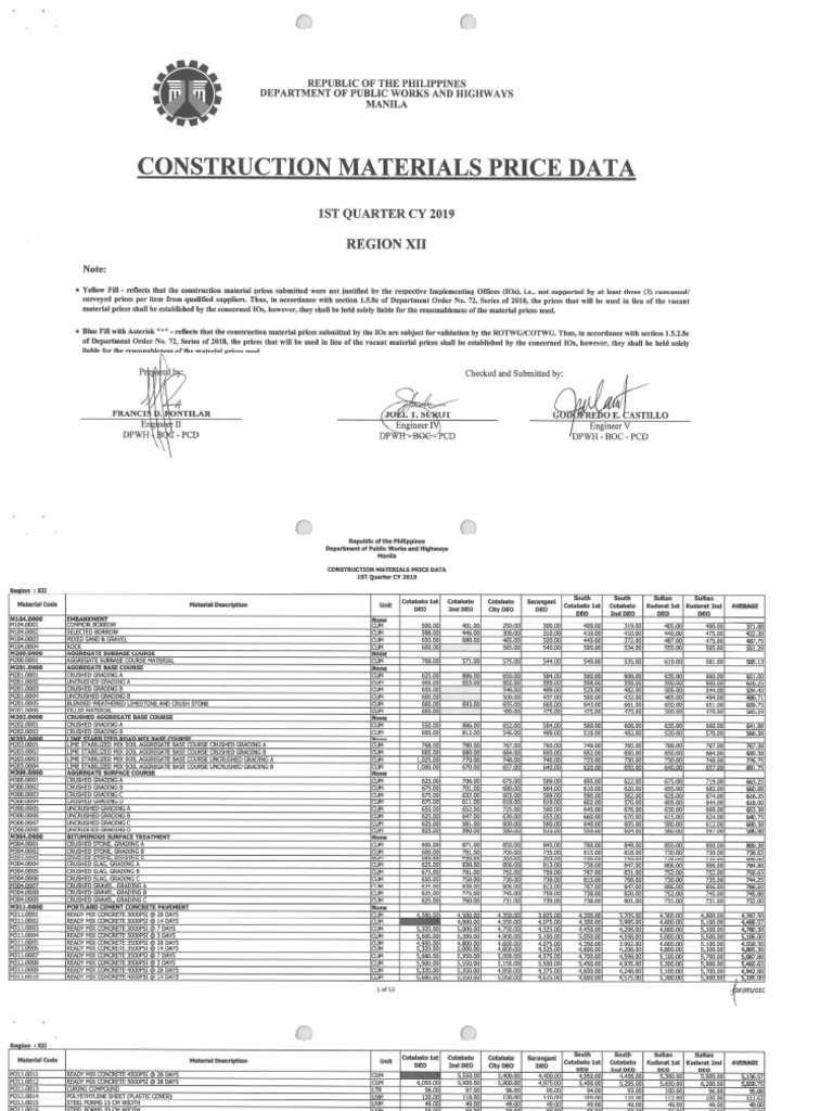Construction Material Data by DPWH Xii 2019 PDF Construction Materials Price Data Dpwh Deployment of the dpwh construction materials price data (cmpd) module in the cost estimation application (cea). Construction materials for each deo jurisdiction. The department of public works and highways has forwarded the construction materials price data for the 1st quarter of 2021 to. This is to formally request for the department of public works and highways updated construction materials price. Construction Materials Price Data Dpwh.