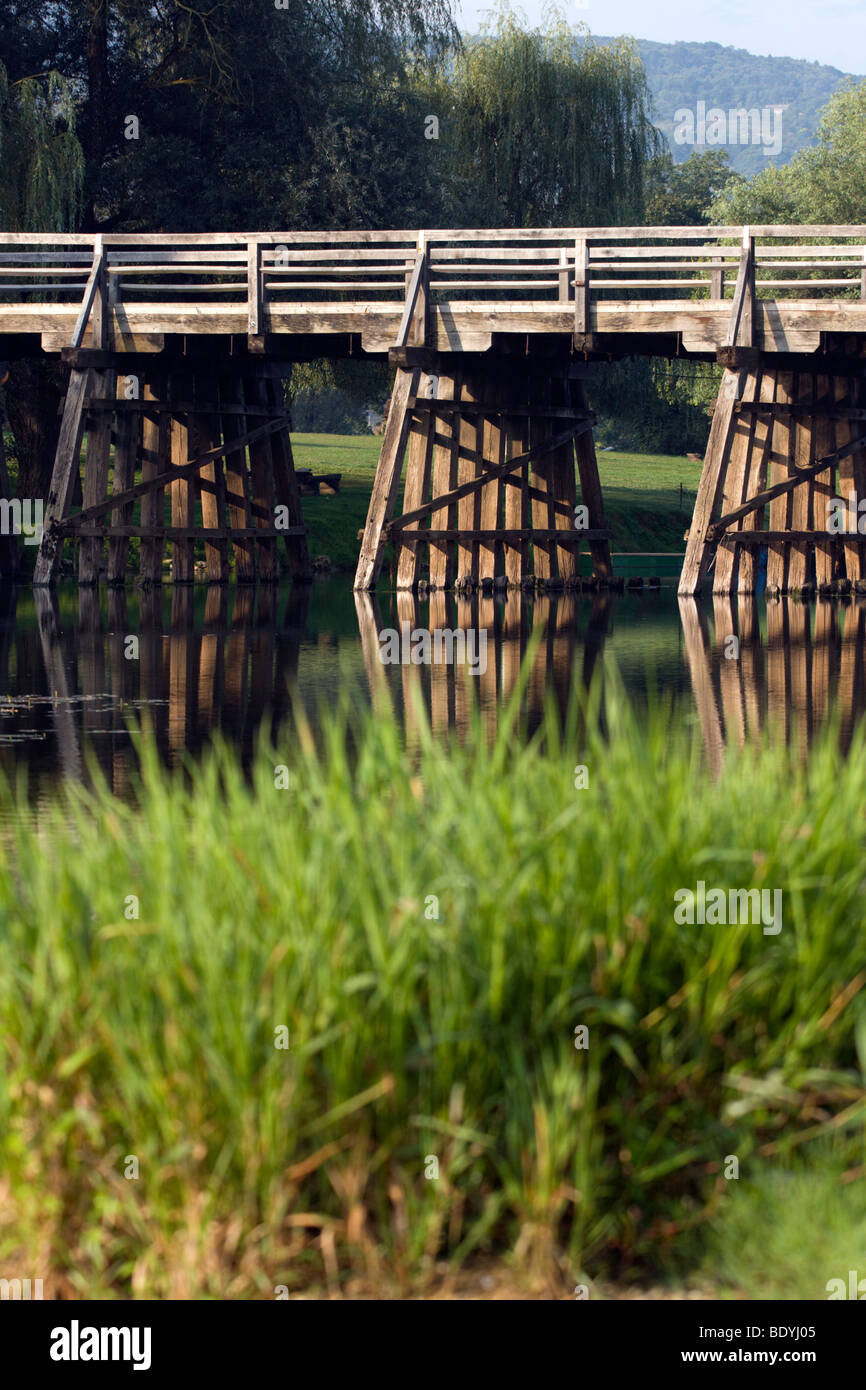 Wooden bridge over the river Stock Photo Alamy