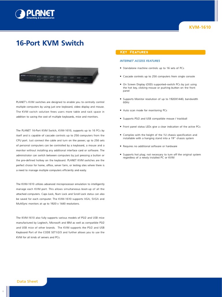 16Port KVM Switch Key Features PDF Personal Computers Computer