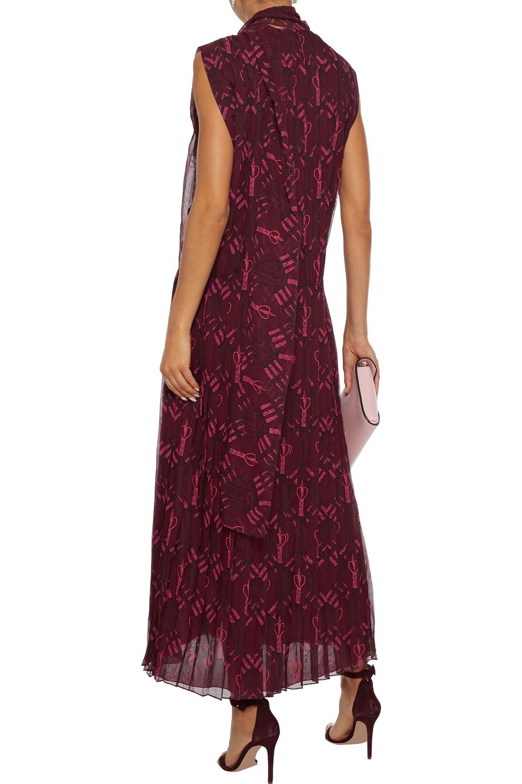 Plum Pleated printed midi dress Sale up to 70 off