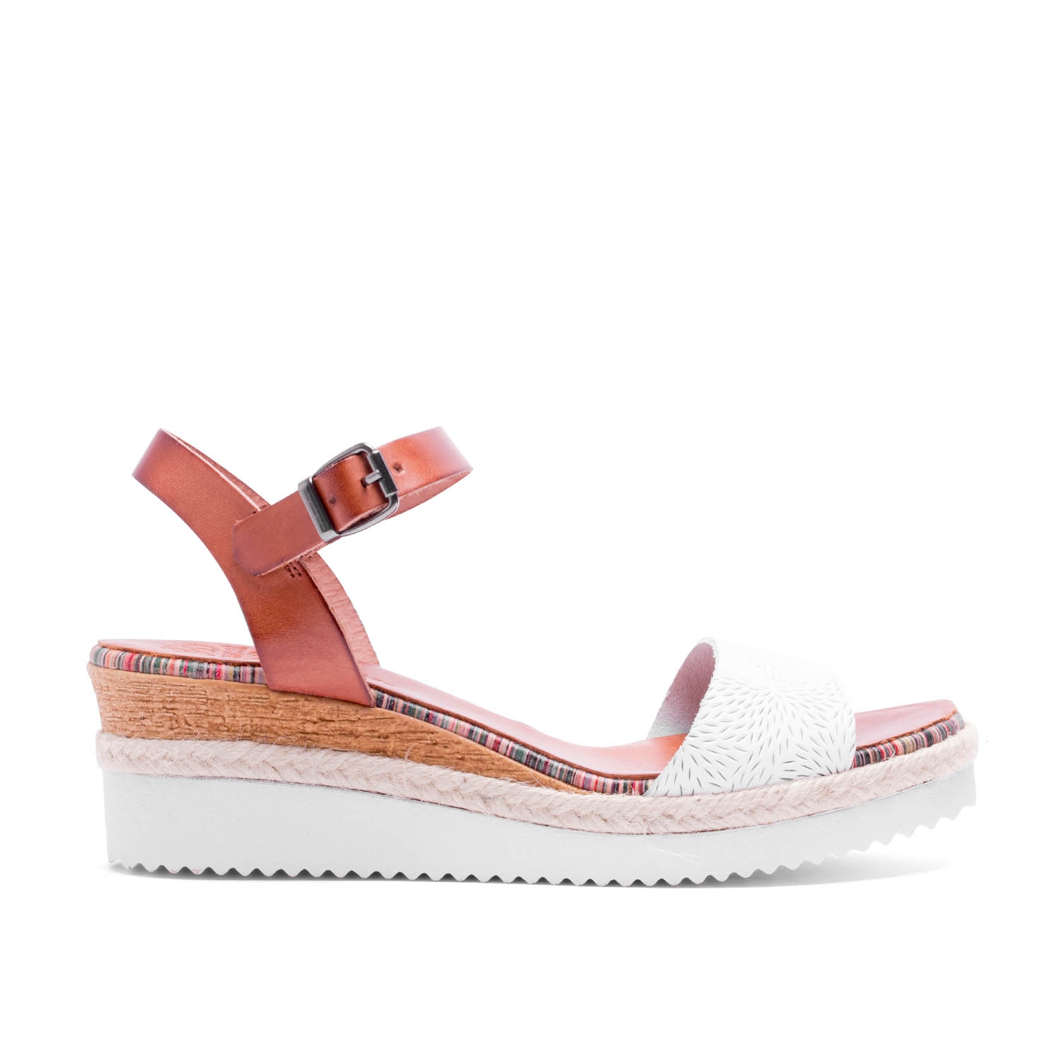 FLORAL EMBOSSED WHITE LEATHER WEDGES