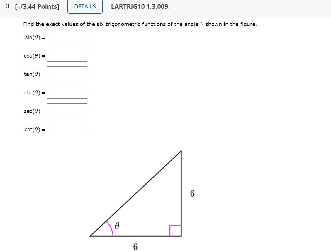 Solved Find the exact values of the six trigonometric