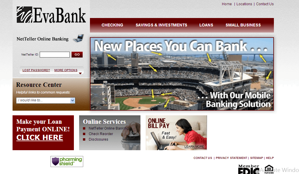 EvaBank Online Banking Login CC Bank