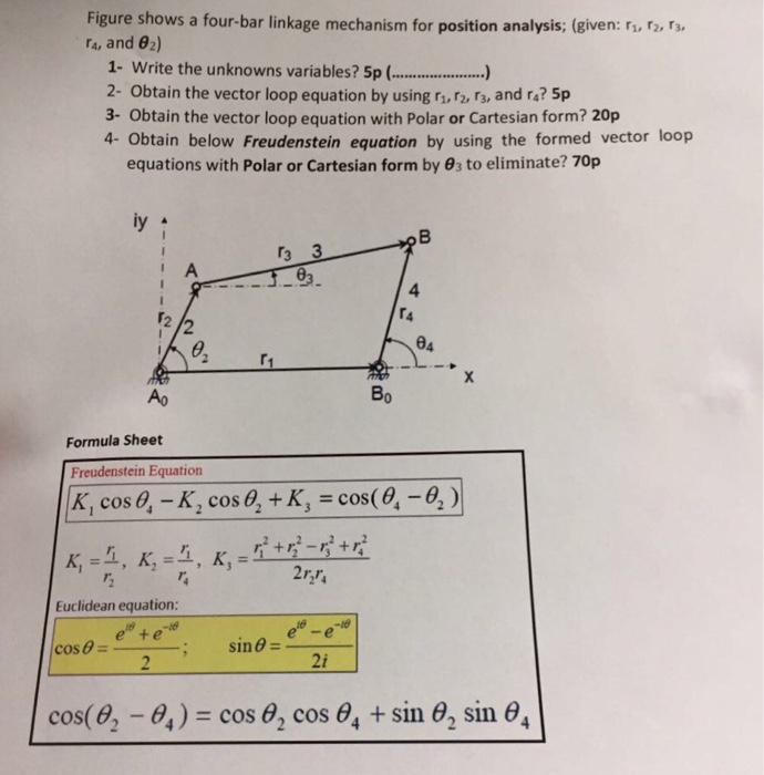 SOLVED Thumbs up for correct answer. Steps for deriving vector loop Vector Loop Equation Four Bar Linkage It is touched upon in dynamics courses, but most do not go into. the vector loop equation is derived by summing the position vectors around the closed loop of the fourbar linkage and setting. the derivation of the vector loop equation for a fourbar linkage mechanism involves defining the position vectors of the links and the. this. Vector Loop Equation Four Bar Linkage.