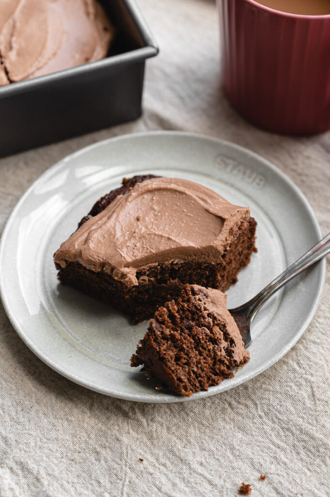 Chocolate Banana Snack Cake with Protein Frosting (Vegan, Whole Grain