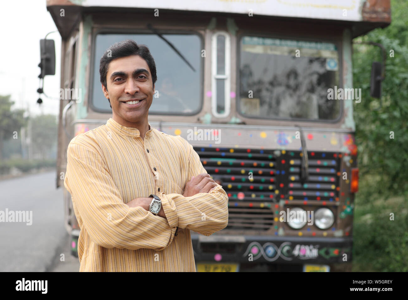 Truck driver smiling with his arms crossed Stock Photo Alamy