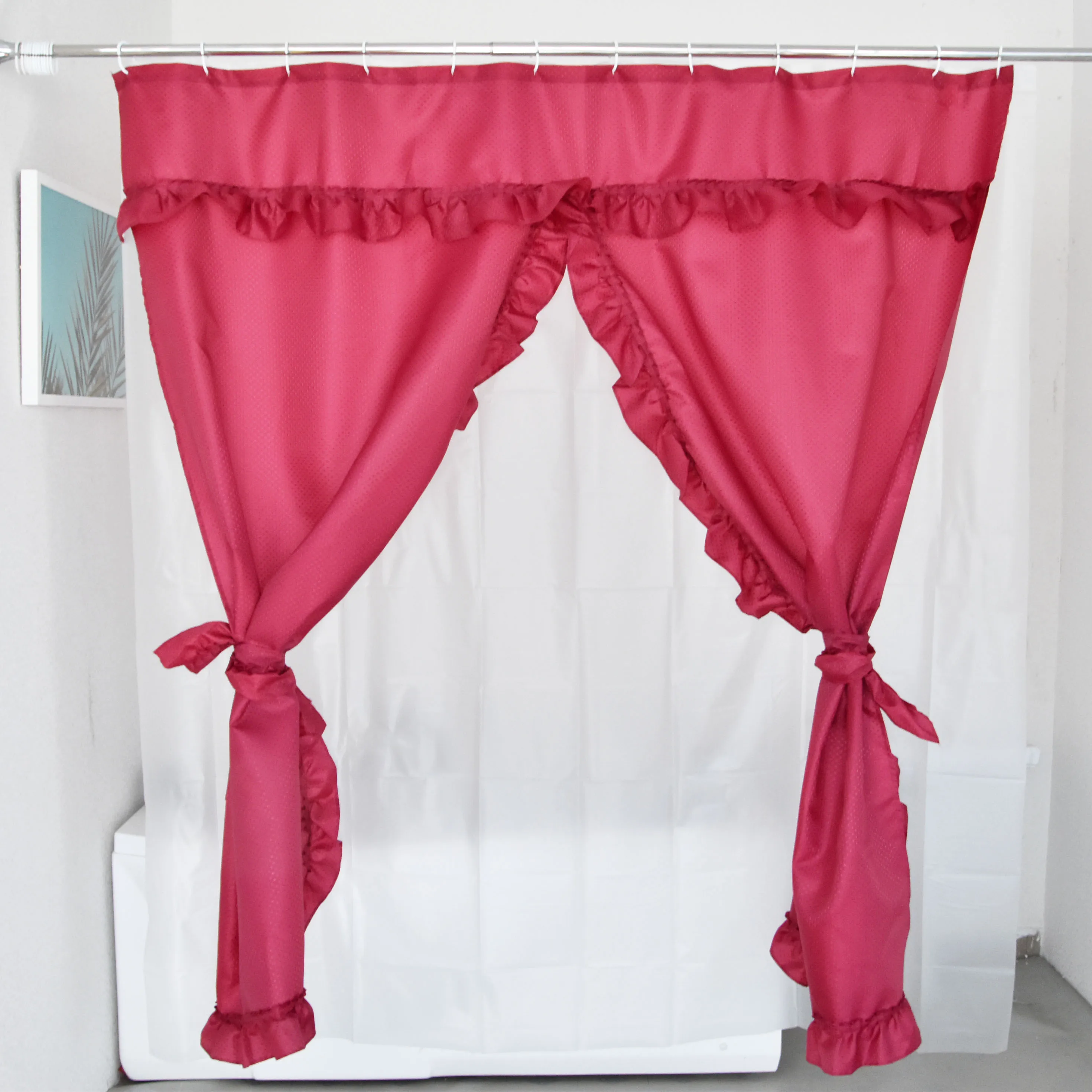 Bathroom Window Curtain Set W/Tie Backs & Ruffle Valance Lauren 70"x45 Valances Shower Curtains our lace shower curtains with attached valance and 7 tassels come in 4 colors (black shower curtain, ivory shower. 72 inch fabric shower curtain with attached valance for perfect farmhouse decor. check out our shower curtain valance selection for the very best in unique or custom, handmade pieces from our. check out our shower curtains with valance. Valances Shower Curtains.