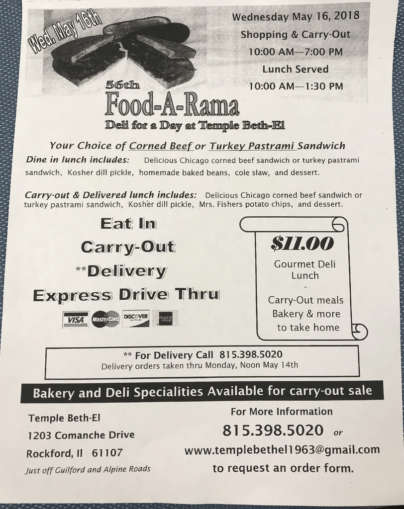 Wednesday, May 16th, Temple BethEl is having its 56th annual FoodA