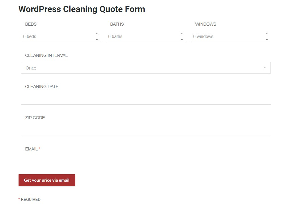 Cleaning Quote Form ez Form Calculator WordPress Forms Plugin