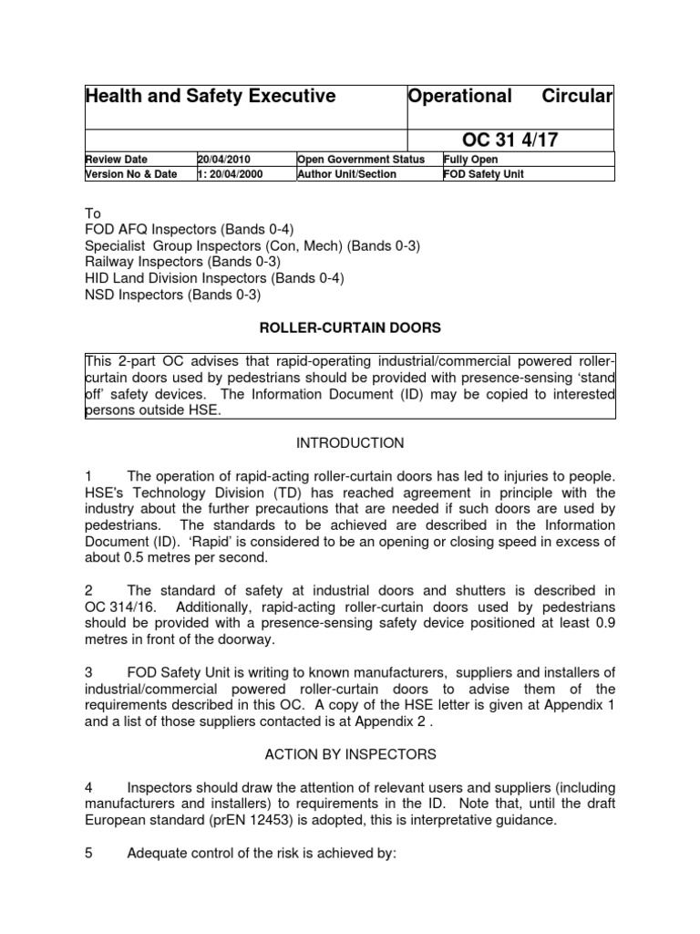 822 Roller Shutter Door OHS Template Safety Door