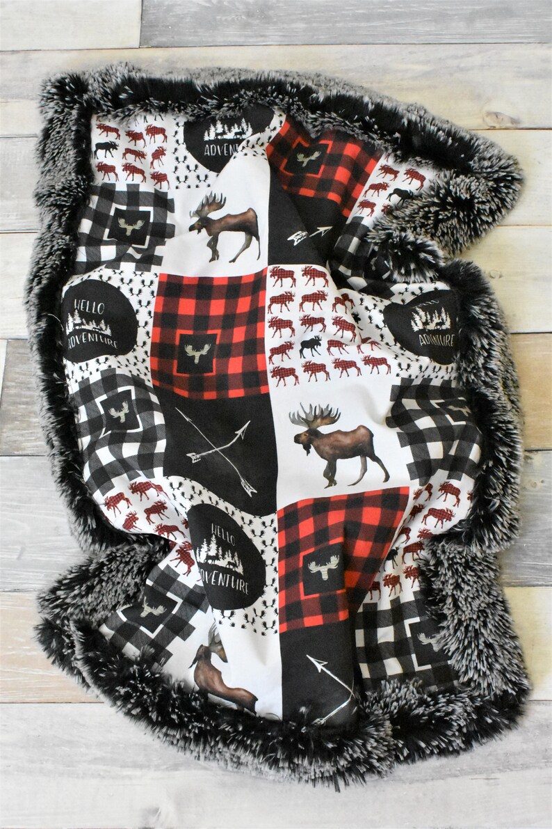 Buffalo Plaid Baby Blanket Moose Baby Blanket Patchwork Etsy
