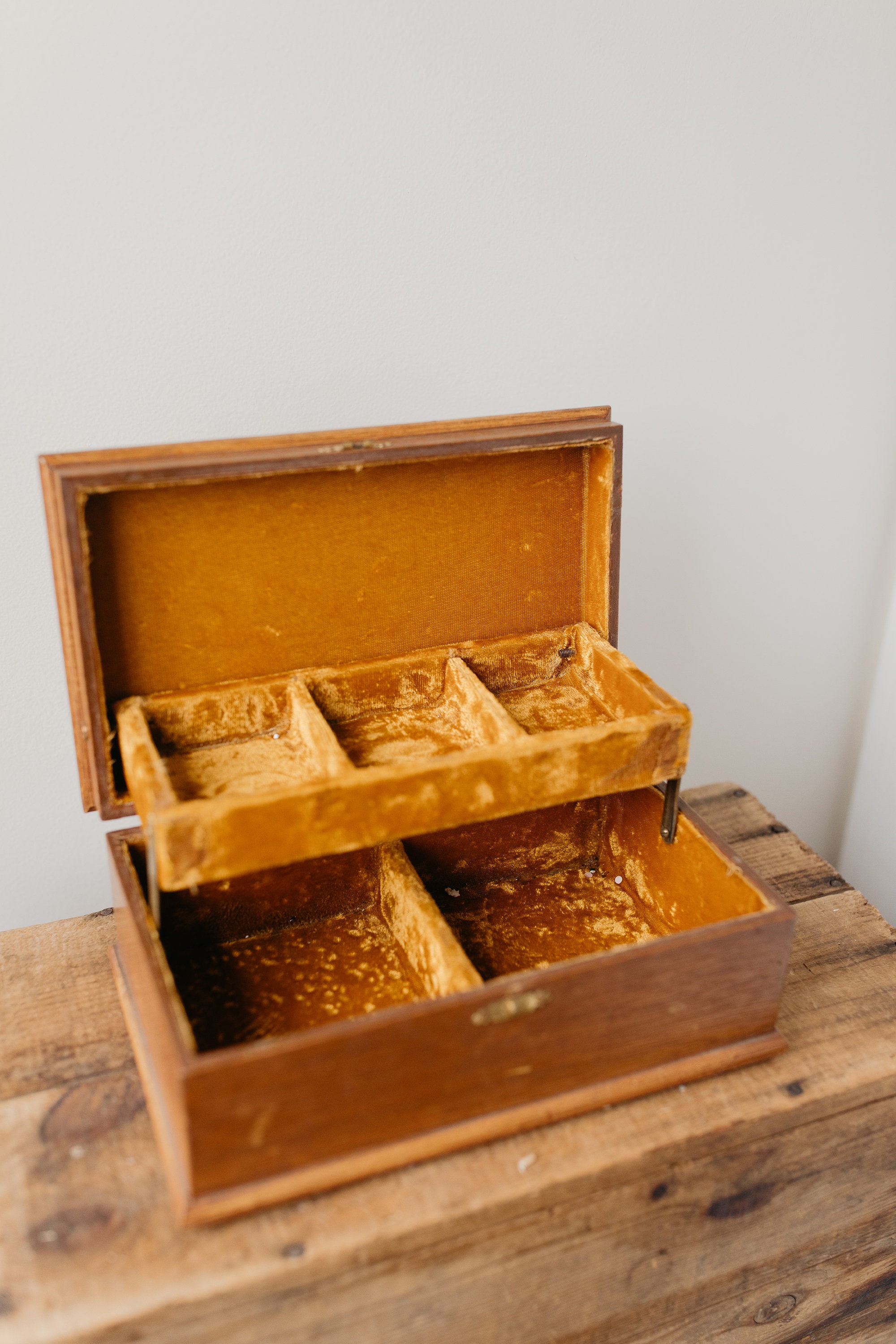 Vintage Wood Jewelry Box Roses Gold Foil Gold Yellow Velvet Etsy UK