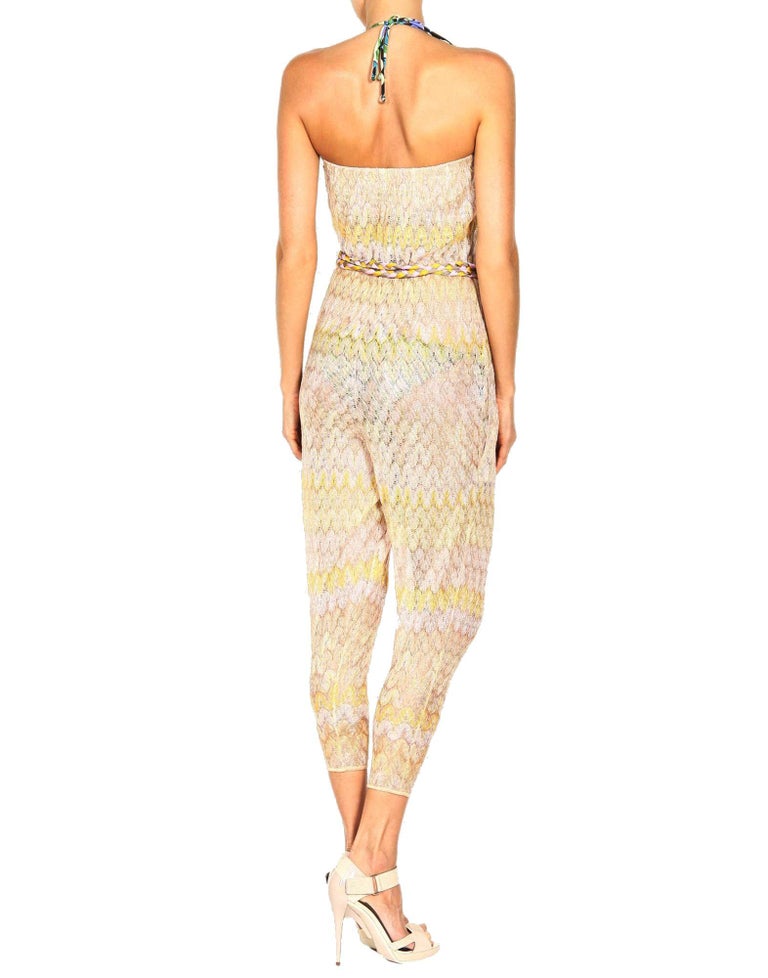 NEW Missoni Chevron Crochet Knit Bandeau Jumpsuit Overall Playsuit Belt 42 For Sale at 1stDibs