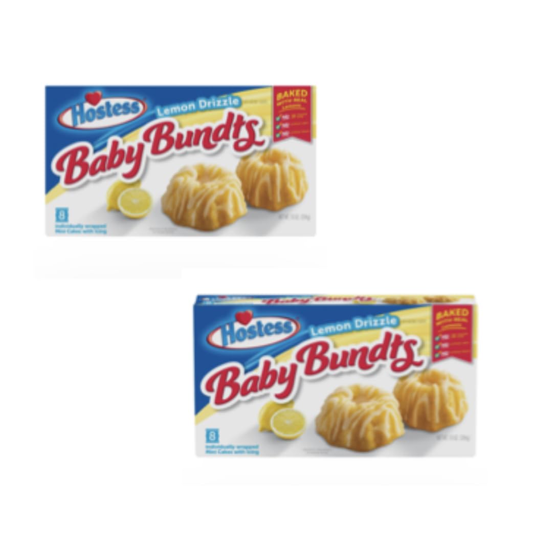 Hostess Lemon Baby Bundts Drizzle Mini Cakes With Icing (2.5 oz Hostess Baby Bundts Introducing one of hostess' newest cakes; Say hello hostess lemon drizzle baby bundts! Made of delicious, moist cake with icing and fun, tasty cinnamon. Selection of yummy valentine’s treats. This tasty twist on the iconic bundt cake is a bundle of sweet delight. These deliciously soft and moist mini bundt cakes have been drizzled with sweet and zesty lemon drizzle. Hostess Baby Bundts.
