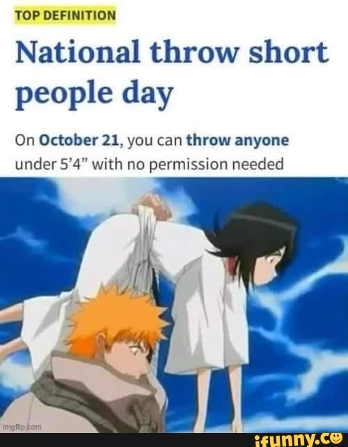 Happy throw short people day r/houkai3rd Throw A Small Person Day National throw short people day on october 21 , you can, without permission throw anyone who is 5’ 5” or shorter with no. Celebrate national throw short people day with a smile and a sprinkle of mischief. “great things come in small packages”, national short person day is on december 22. In the 1980s, there was a growing awareness of. Throw A Small Person Day.