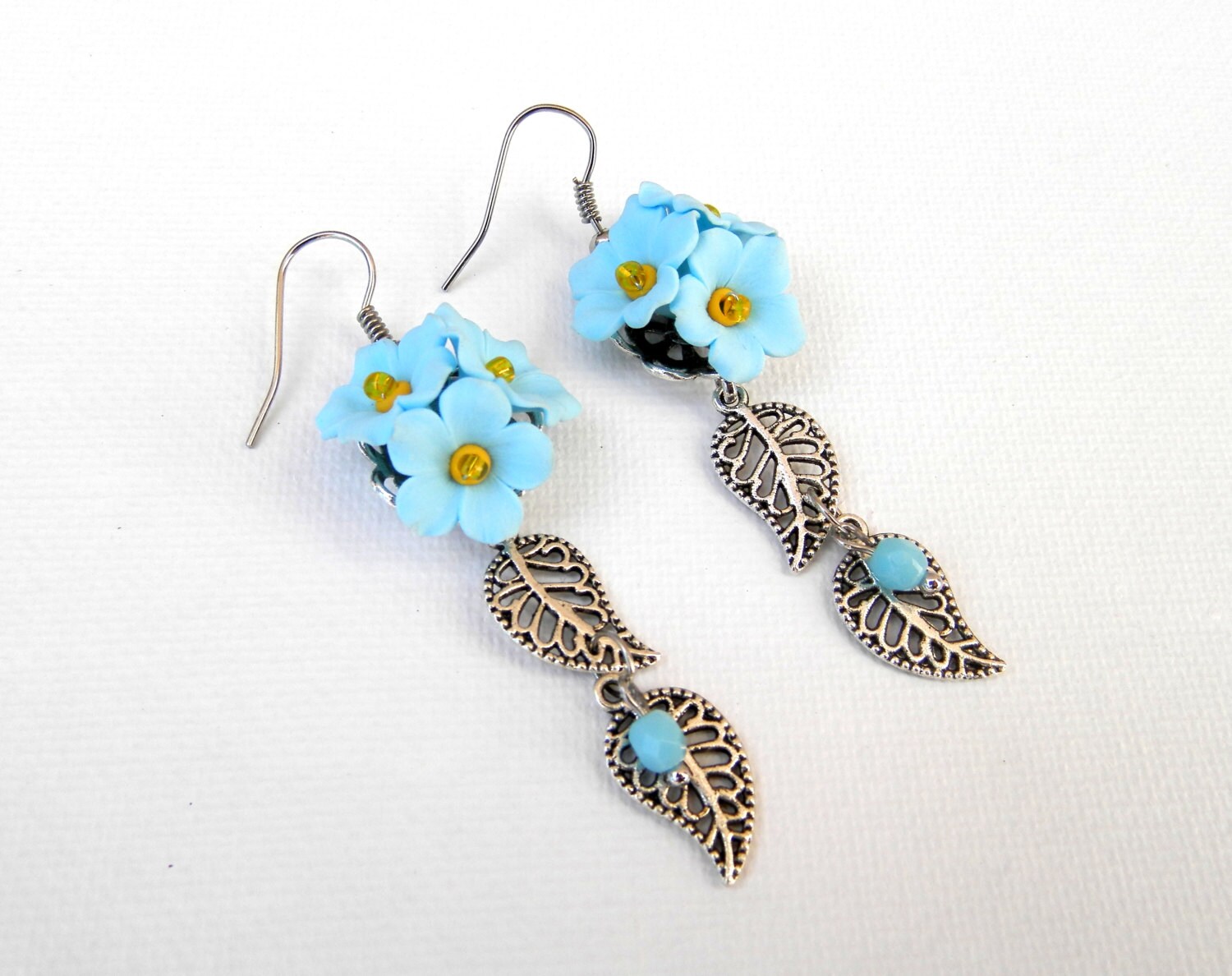 Flower Earrings Light Blue Earrings Blue Jewelry by insoujewelry