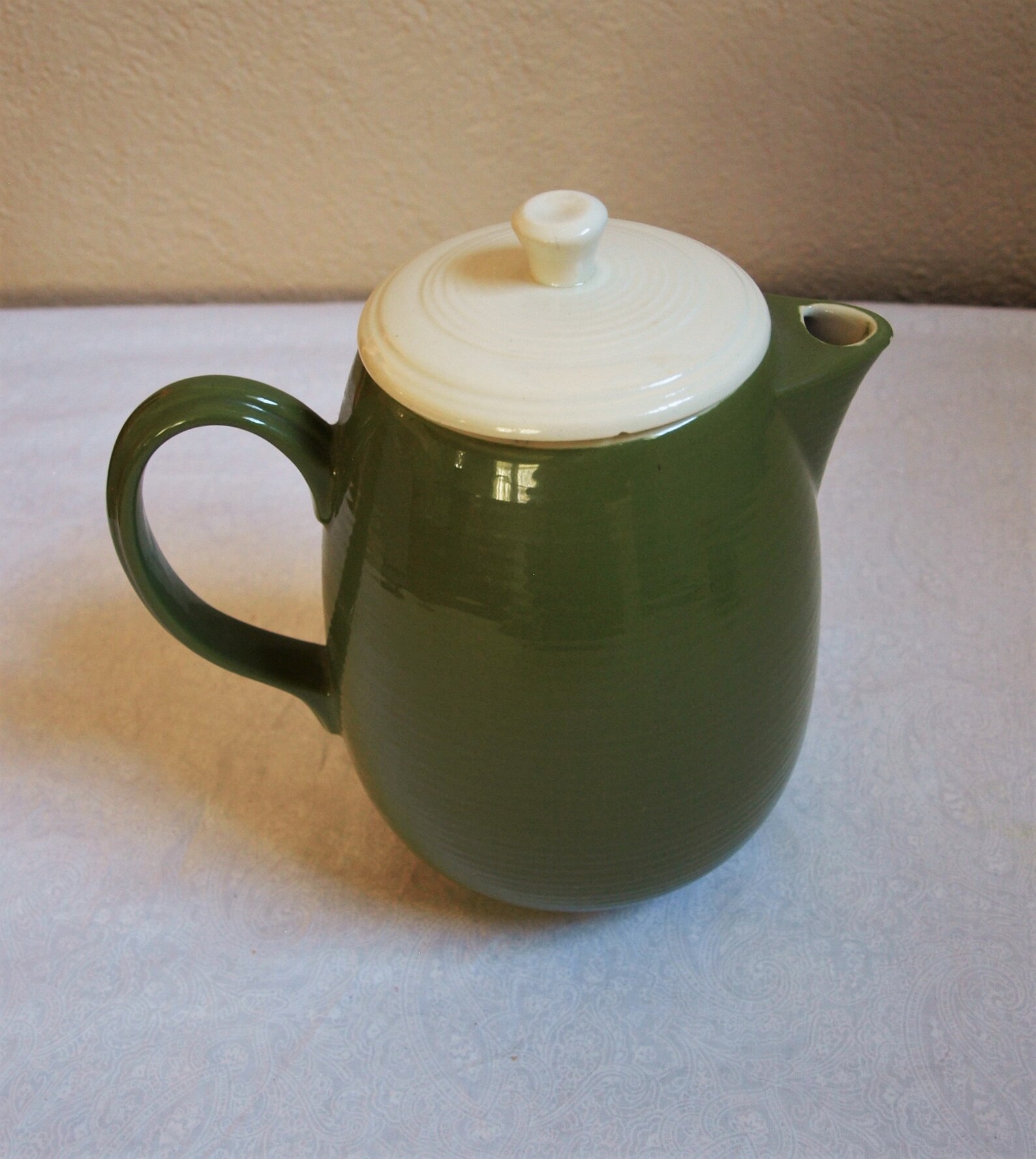 Vintage Retro Mod Coffee Pot / Teapot Olive Green and White Etsy