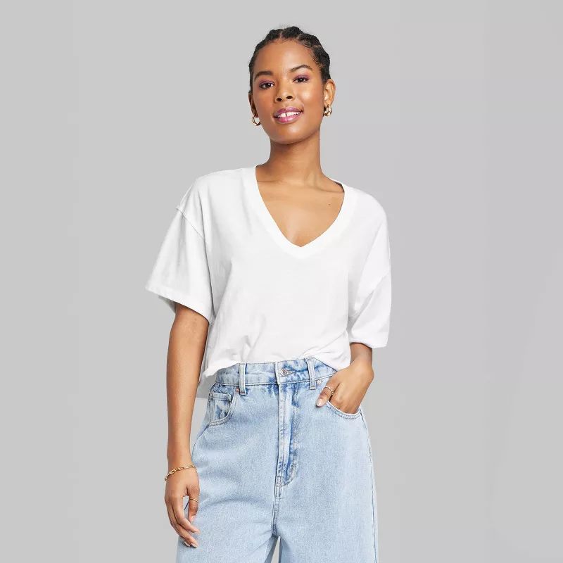 Women's Short Sleeve VNeck Cropped Boxy TShirt Wild Fable White XXL Women's Short Sleeve V-Neck Cropped T-Shirt - Wild Fable Choose from same day delivery, drive up or order. Price and other details may vary based on product size and color. Women's Short Sleeve V-Neck Cropped T-Shirt - Wild Fable.