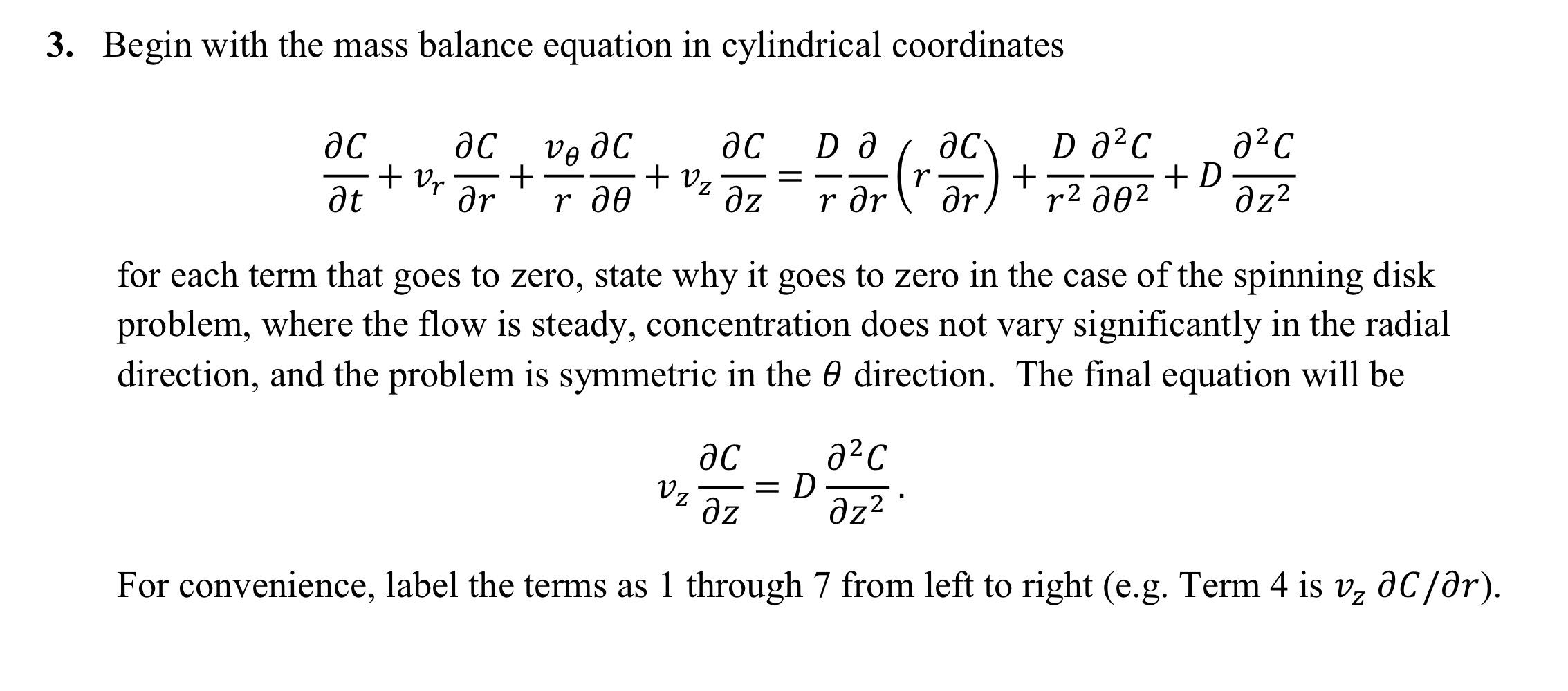 Solved 3. Begin with the mass balance equation in