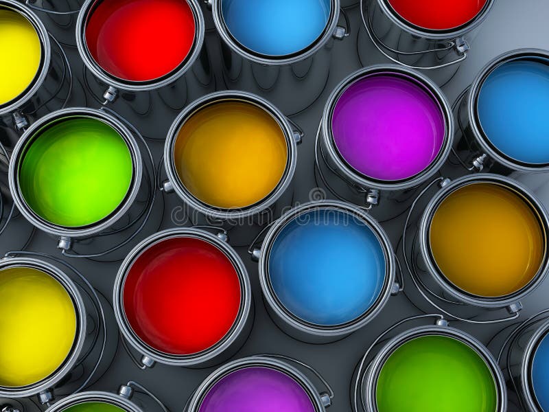 Vibrant colors paint cans stock illustration. Illustration of