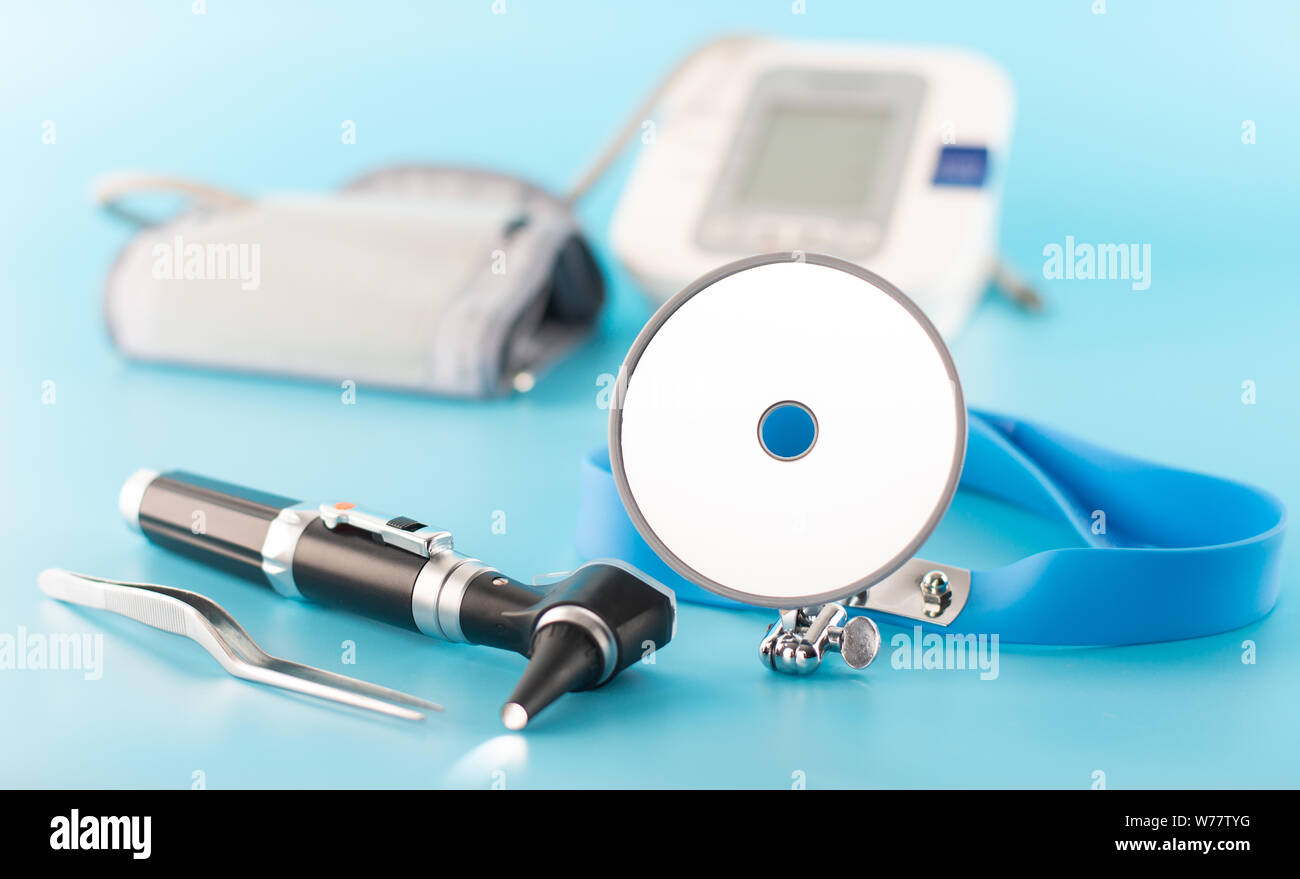 Ear professional instrument on blue background Stock Photo Alamy