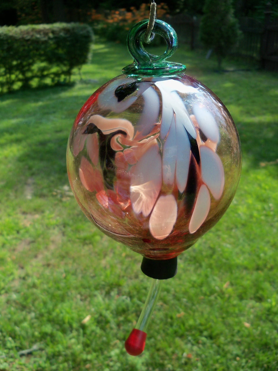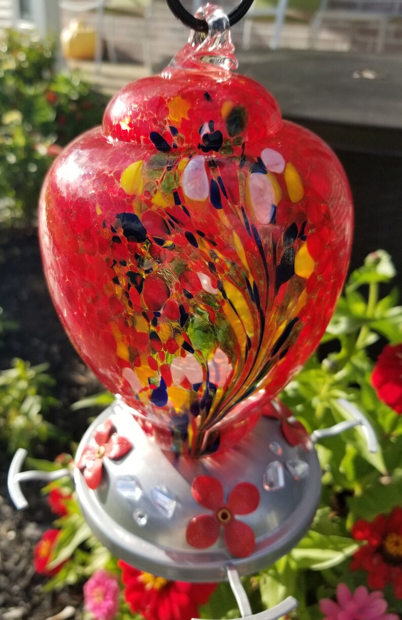 Hand Blown Glass Hummingbird Feeder Shop Lujii hummingbird feeder, hand blown glass hummingbird feeder, never fade, 36 fluid ounces, 5 feeding metal stations, much bigger, garden backyard. Check out our hummingbird feeder hand blown glass selection for the very best in unique or custom, handmade pieces from our feeders &. Gorgeous design with decorative flower detail to add a touch of beauty to your garden. We’re. Hand Blown Glass Hummingbird Feeder Shop.