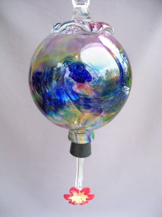 Hand Blown Glass Hummingbird Feeder Shop At winship designs we make beautiful, functional glass hummingbird feeders. Gorgeous design with decorative flower detail to add a touch of beauty to your garden. 5 flower feeding ports offer resting and. We’re glassblowers working in borosilicate glass…laboratory glass. Lujii hummingbird feeder, hand blown glass hummingbird feeder, never fade, 36 fluid ounces, 5 feeding metal stations, much bigger, garden backyard.. Hand Blown Glass Hummingbird Feeder Shop.