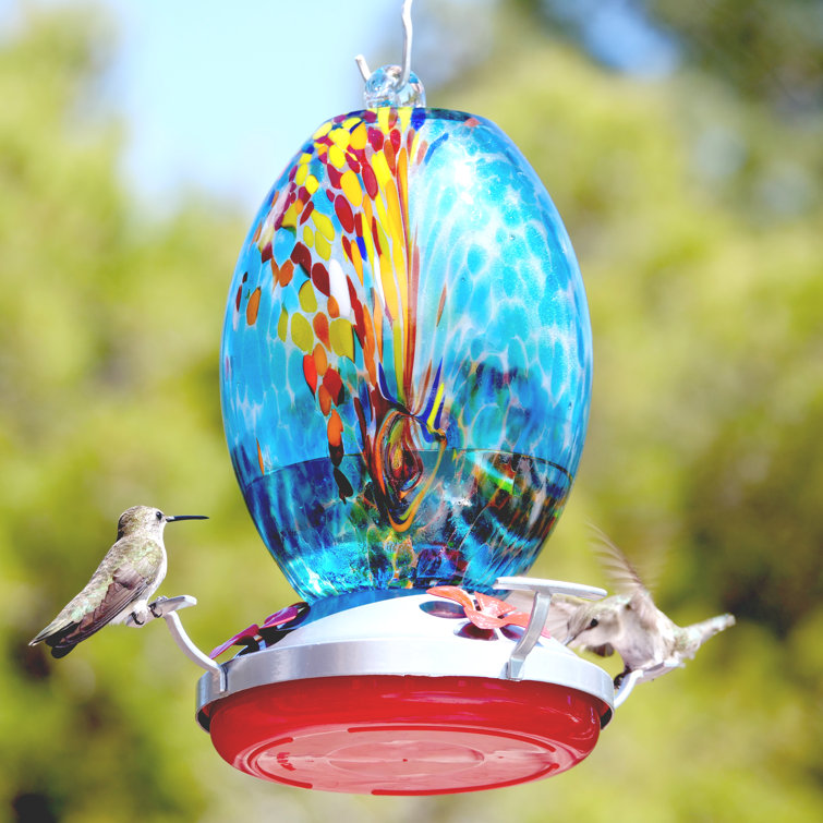 Hand Blown Glass Hummingbird Feeder Autioyea Blue Colors 28 oz Hand Blown Glass Hummingbird Feeder Shop We’re glassblowers working in borosilicate glass…laboratory glass. Lujii hummingbird feeder, hand blown glass hummingbird feeder, never fade, 36 fluid ounces, 5 feeding metal stations, much bigger, garden backyard. 5 flower feeding ports offer resting and. Gorgeous design with decorative flower detail to add a touch of beauty to your garden. Check out our hummingbird feeder hand blown glass selection for. Hand Blown Glass Hummingbird Feeder Shop.