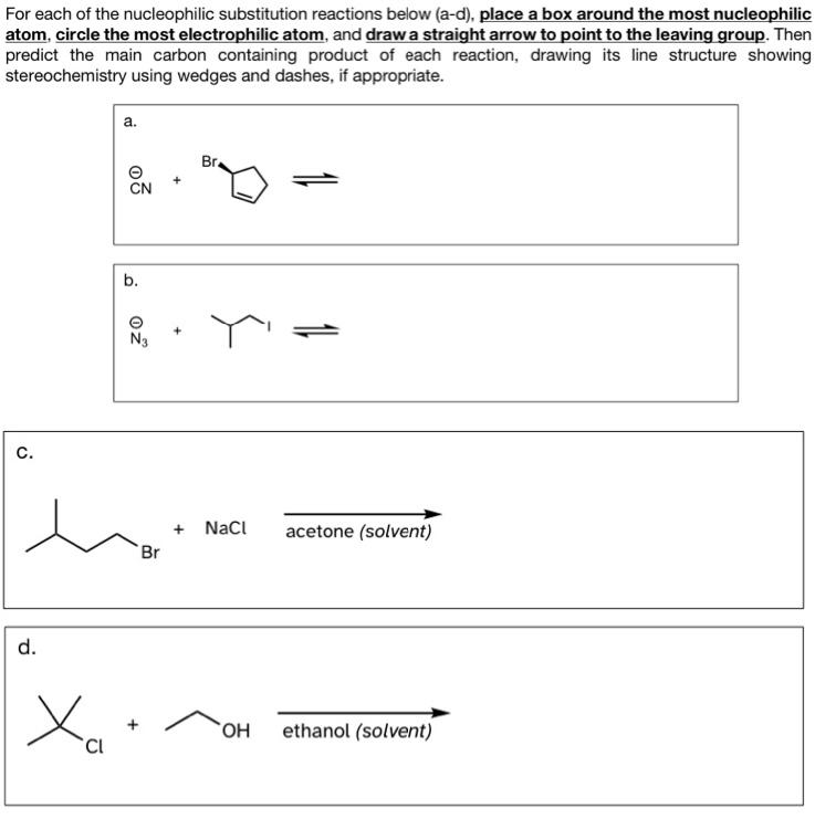 Solved For each of the nucleophilic substitution reactions