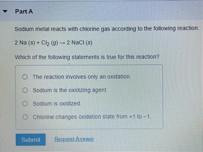 Solved Part A Sodium metal reacts with chlorine gas