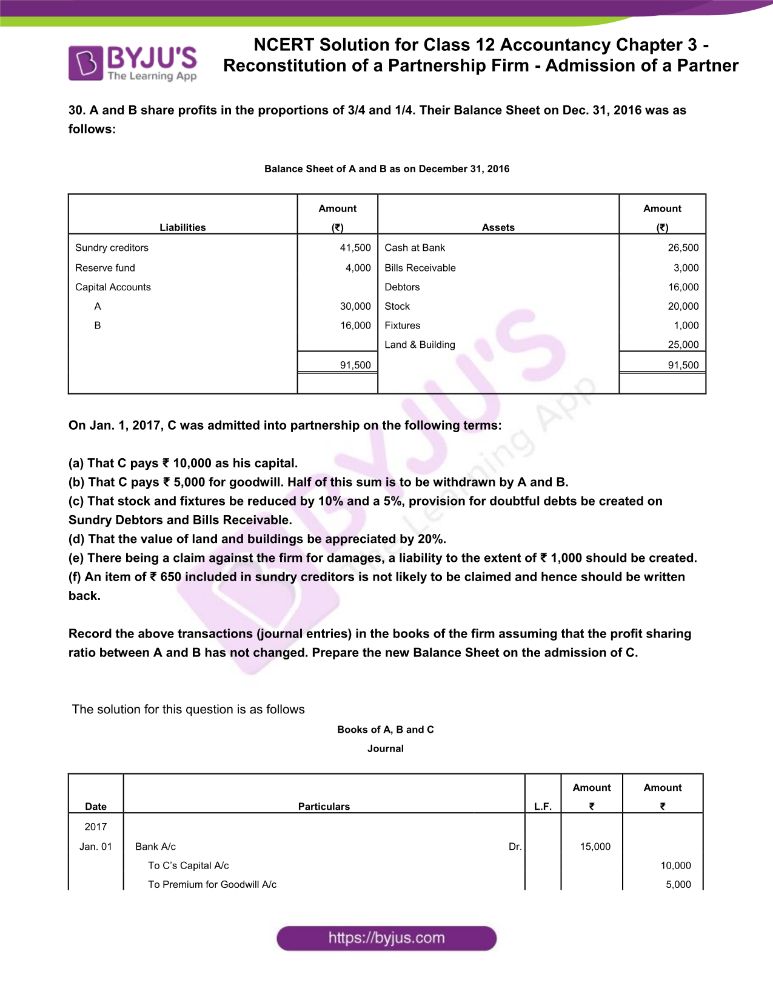 NCERT Solution for Class 12 Accountancy Chapter 3 Reconstitution of a Accounting For Partnership Firms Fundamentals Ncert Solutions Ncert solutions for class 12 accountancy part 1 chapter 2 accounting for partnership: Question answers, short and long answers type questions,. Chapter 2 accounting for not for profit organisation. Partnership is the relation between person who have agreed to share the profit of a business carried on by all or any of them acting for all. In the absence of. Accounting For Partnership Firms Fundamentals Ncert Solutions.