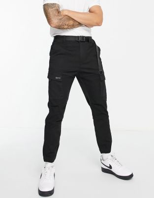 Bershka Belted Cargo Pants In Black ModeSens
