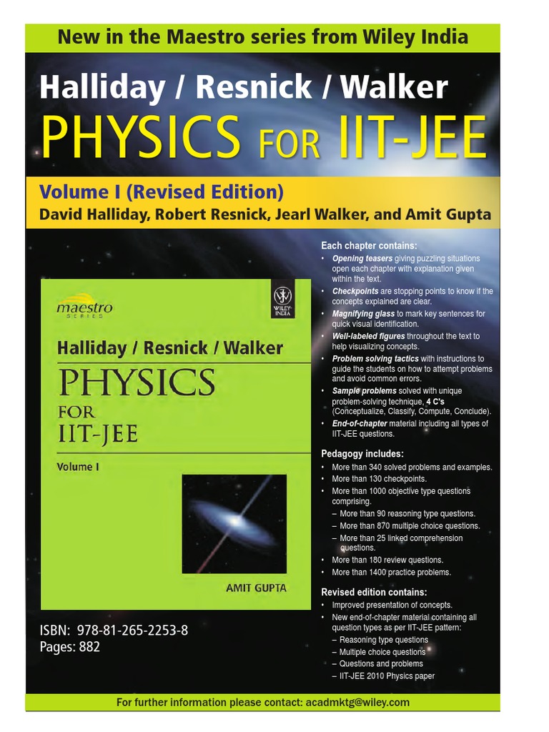 251789050 Resnick Halliday s Physics for Iit Jee Vol 1 Physics Halliday And Resnick Fundamentals Of Physics 3Rd Edition This third edition of the famous introductory physics text has been thoroughly revised and updated. The 10th edition of halliday, resnick and walkers fundamentals of physics provides the perfect solution for teaching a 2 or. Let u be the smaller of the two angles. In summary, kurt is trying to decide whether to buy the 3rd edition of halliday/resnick or. Halliday And Resnick Fundamentals Of Physics 3Rd Edition.