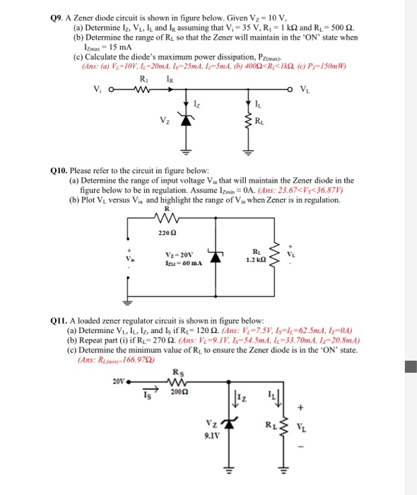 Solved 09, A Zener diode circuit is shown in figure below.