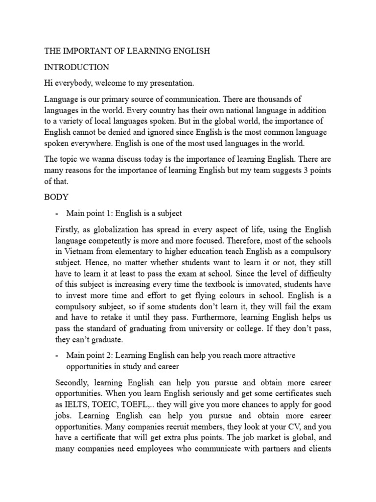 The Important of Learning English PDF